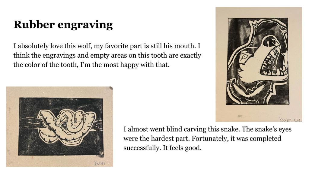 在刻那条蛇的时候,我几乎要刻到眼睛花了。